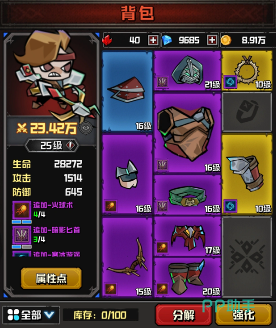 装备品质体系分为白、蓝、黄、橙四级。白色与蓝色装备仅适用于新手期过渡,基础属性偏低,不建议投入强化资源,通关后可直接分解或出售;黄色装备具备多条随机词条,是构建流派雏形的关键材料,若词条属性(如暴击率、技能冷却缩减、特定伤害加成)与主玩职业及技能链高度契合,应优先保留并持续强化。