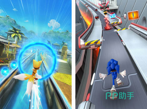这款以经典的角色索尼克,给大家设置的全新跑酷手游,可让玩家在这里面选择喜欢的各种角色,包括刺猬索尼克,同时还有塔尔斯等,在形象设计上,都沿用了大家熟悉的样子。进入3d的世界以后,每个玩家都可尽情的进行跑酷,享受趣味性的挑战。在每个关卡中的玩家,需要不断的跳过障碍,躲避危险的情况,这样才有机会冲向终点,走向胜利。