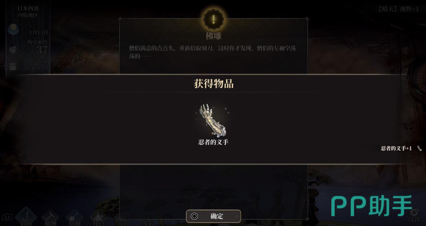 关于获取方式,“忍者的义手”并非商店直购或常规副本掉落,而是通过特定剧情链解锁:玩家需先抵达那霸港区酒楼,与位于建筑右侧的NPC展开对话,触发“芦苇地的忍者”支线;随后按指引前往东亚区域的潜狼溪,在该地图完成线索搜寻与环境交互后,方可获得该装备。该流程具有唯一性与不可跳过性,是游戏内少数绑定地理坐标的隐藏装备之一。