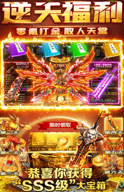除此之外活动种类繁多,给玩家提供了多样化的游戏体验。像是跨服时装活动,玩家可以在跨服战场中与其他玩家竞技,击败恶魔天使和眶毗大帝,赢取丰厚的奖励。而且还有登录送福利活动,玩家仅需登录游戏即可获得元宝、绝版时装、称号等奖励。这些活动不仅增加了游戏的趣味性,也为玩家提供了提升角色实力的机会。