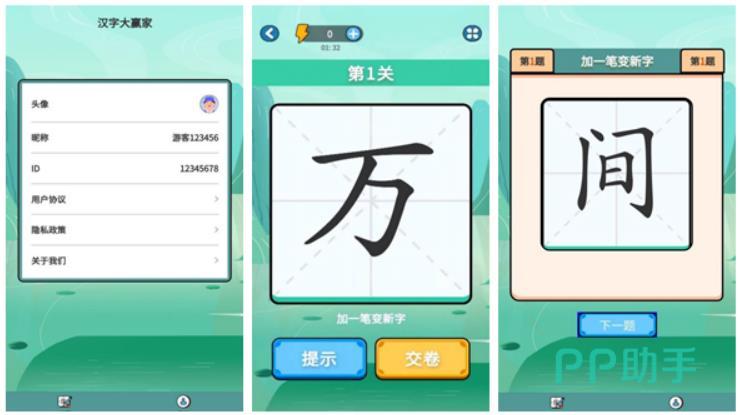 以汉字解谜为核心的休闲闯关游戏,玩家需通过拆分汉字结构或补充缺失笔画完成关卡任务。游戏收录了数千个常见及生僻汉字,玩法的亮点在于汉字部首拆分系统,玩家需根据提示将散乱的笔画组合成完整汉字。这款游戏更适合适合汉字爱好者与休闲玩家,既能提升语文素养,又能体验到挑战性与趣味性。