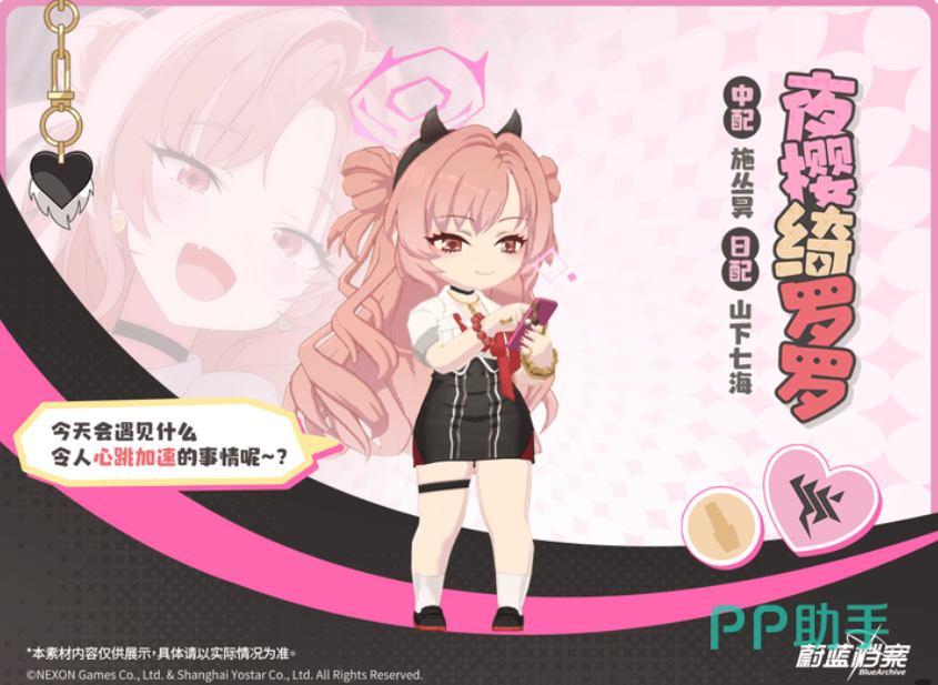 绮罗罗是《蔚蓝档案》中即将实装的3星战术单位,隶属歌赫娜学院。角色设定为充满好奇心与活力的学生,性格开朗外向,具备极强的社交适应性,能迅速与陌生队友建立信任关系。定位为中排突击输出,攻击属性为振动,防御类型为轻装甲,适合承担持续火力压制任务。