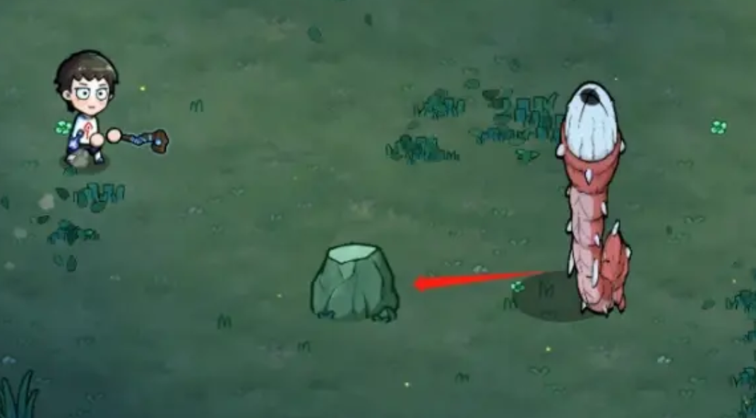 其第一类攻击表现为蓄力突进:游荡蠕虫会短暂静止,躯体明显拉长后高速向前直线冲撞。该技能具备明确前摇动作与固定路径,属于典型的“可预判型”威胁。场景中散布的岩石障碍物并非装饰,而是核心防御资源——玩家需主动规划走位路线,在其进入蓄力状态瞬间横向绕至石块后方,利用掩体完全规避伤害。切忌原地硬抗或向正前方闪避,否则极易被判定为碰撞命中。