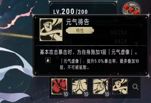 而莱夏的独特之处,还在于他所拥有的元气祷告这一特性,这个特性与普通攻击相连,每当他的普攻触发暴击时,就如同在他身上点燃了一层元气虚像,这层元气虚像是实打实的实力提升效果,每一层元气虚像都能为他带来 5%的暴击率加成,而且这个效果最多可以叠加至10层,且这种元气虚像是不可驱散的,只要战斗仍在继续,随着时间的推移和普攻暴击的不断触发,莱夏身上的元气虚像便会逐渐累积,当战斗时间足够长时,他最高能够获得50%的暴击率加成。
