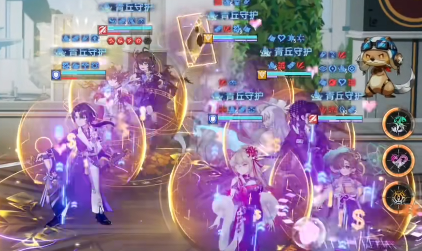 被动技能“四次元尾巴”(3星解锁)在每回合首次行动后触发:从尾巴中随机掉落功能性道具。其中,“泡面”可同时回复我方全体生命值与灵值;“可乐”则赋予全体友方单位下一次敌方攻击型技能的必定闪避效果,并附加护盾。