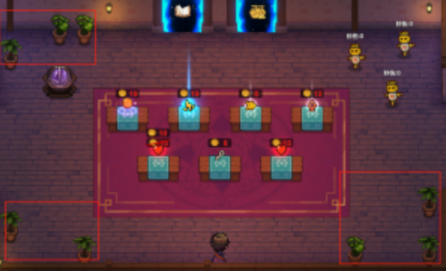 除了常规的房间外,游戏中还存在一些特殊房间,比如在药水房、法术合成房里面,以及无伤通过每关BOSS后的无伤房都是难得的奇遇,然而大多数需要钥匙解锁的房间则充满了未知的战斗,这些房间大多是小游戏形式,看似简单但是每一个房间的类别都不一样,比如九宫格谜题,将九个格子按特定顺序编号,根据每局相同的图案但不同的摆放位置,踩下对应的按钮即可过关,而过障碍的房间则需要灵活运用闪电疾行等技能,甚至可以利用召唤物试探路径。
