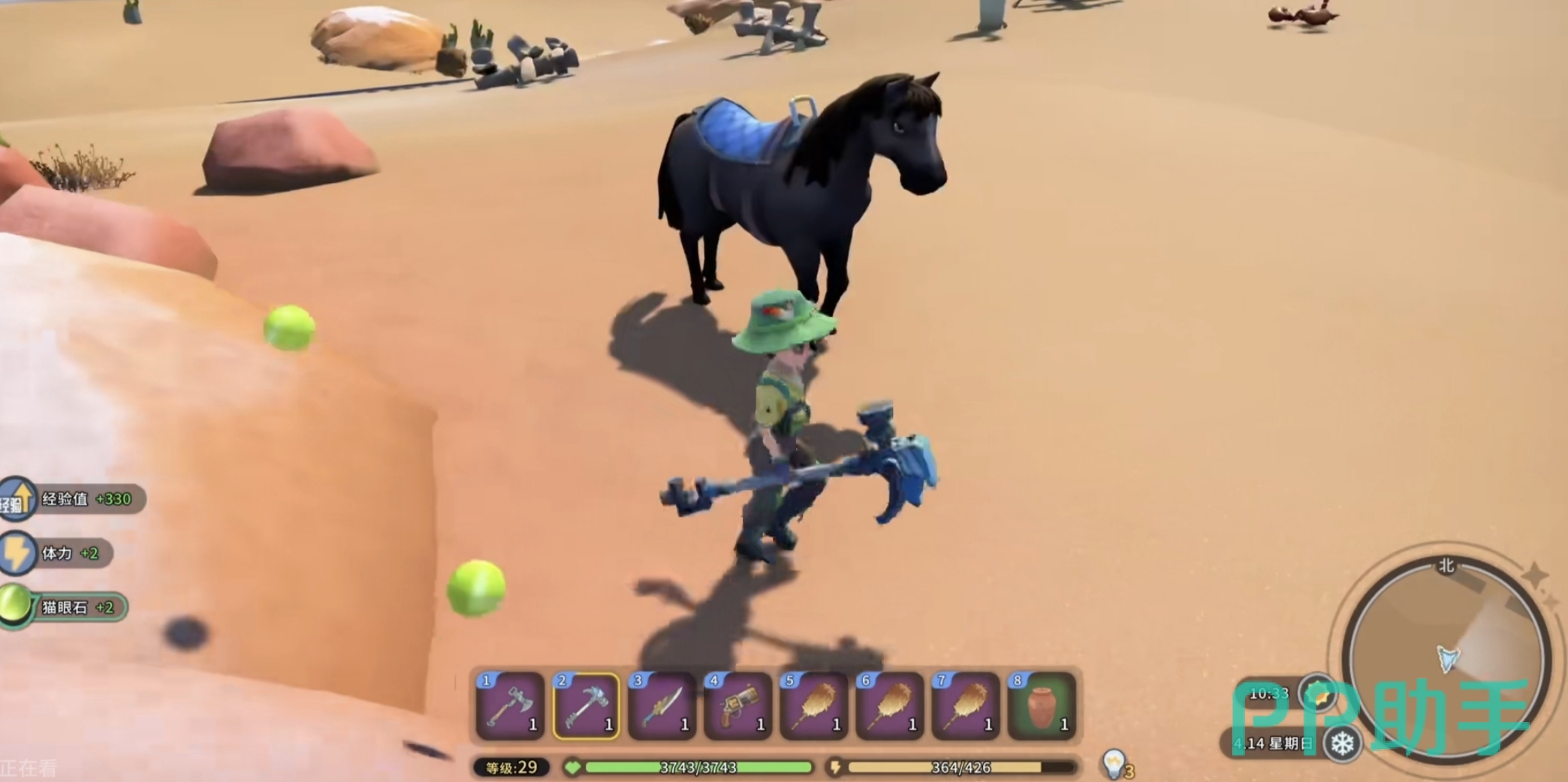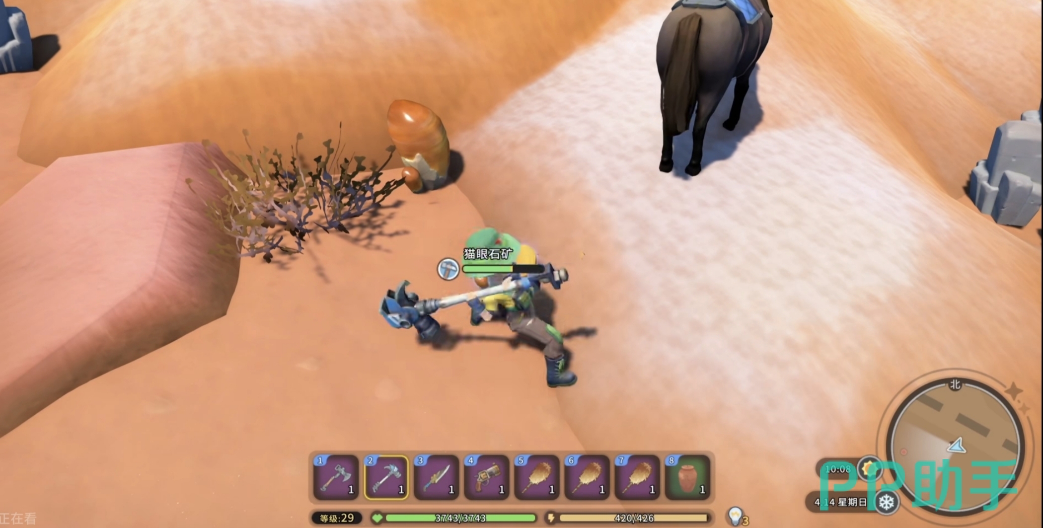 第二条获取路径为战斗掉落机制:在中桥对岸小山丘区域活动的“晶核守卫者”类怪物,击败后有固定概率掉落猫眼石矿(基础掉落率23%,装备“精准采集手套”后提升至31%)。建议出征前装配近战钝器或高破甲弓箭,并携带至少3组止痛药与1把标准矿镐。该方式虽需消耗战斗准备时间,但单次成功击杀可获得3–5单位矿石,且不占用采集冷却,适合作为紧急补货或资源翻倍策略使用。
