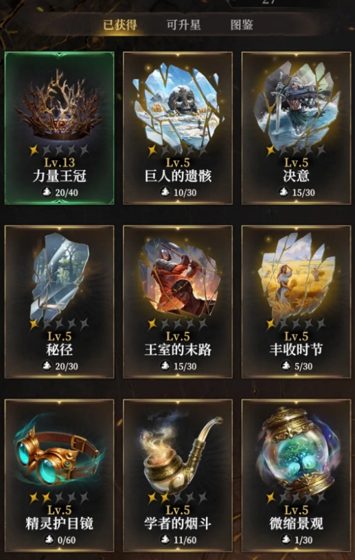 升级秘宝所需材料主要来源于主线推图和商店兑换,资源产出相对有限,因此应根据当前阵容的核心需求合理分配。升星则依赖同名秘宝碎片,每提升一星都会增强其基础属性,并在达到特定星级后解锁等级上限,使秘宝可继续升级。最终,当秘宝同时达到满级与满星状态时,其加成效果将达到峰值。