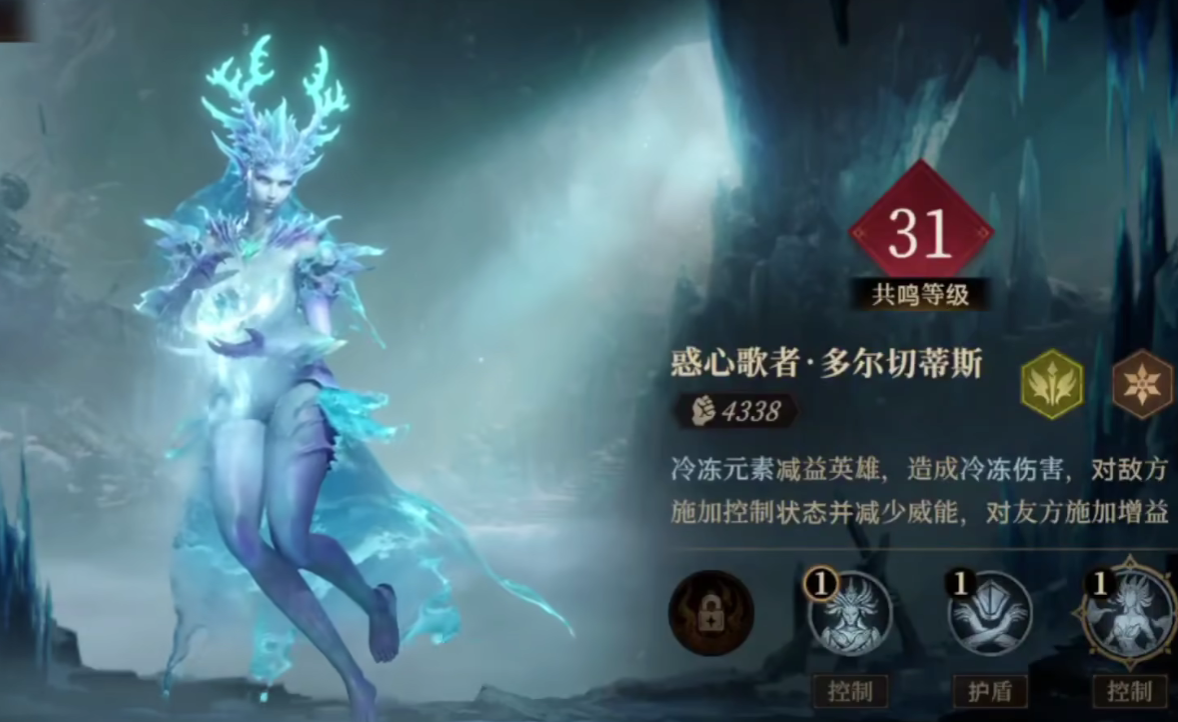 多尔切蒂斯是作为游戏当中的控制类角色存在,她可以为敌人叠加减速效果,并且能够减少敌人的威能,保证敌人在战斗期间无法放置出威能技。