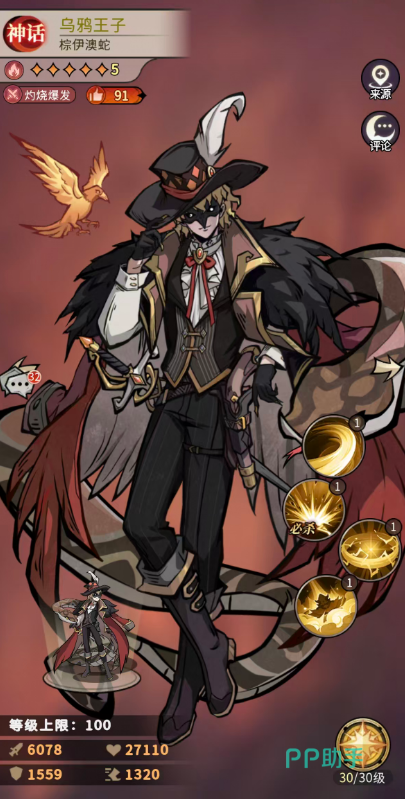 乌鸦王子作为神话品质幻灵,其强度已达到红色卡牌水准,因此不少玩家考虑用他替代早期主力输出小丑菲洛。这一替换倾向的核心原因,在于乌鸦王子并非传统减防型辅助,而是以高爆发、强灼烧联动为核心的纯输出定位——尤其在灼烧体系成型后,他的瞬时斩杀与持续压血能力远超同类角色。