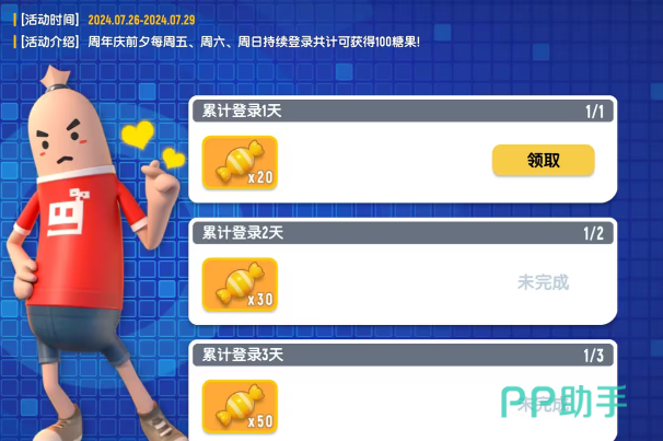 整个七周年庆典期间,玩家们通过简单的参与,就能收获总计700颗糖果的丰厚奖励。这些糖果不仅是游戏中的货币,更是玩家与香肠派对之间深厚情感的象征。它们可以化作游戏中的各种道具和装备,助力玩家在冒险的路上走得更远、更稳。这场庆典的特点在于它的分阶段进行和低门槛参与。每个阶段都有新的惊喜等待着玩家去发现,而无需复杂的任务或高昂的代价。在这里希望大家都能够参加这场活动,不仅仅是为了获取一些奖励,更是为了度过这个难忘的节日。