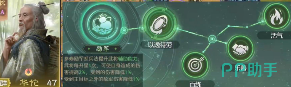 华佗承担全队唯一治疗与防御强化职能,技能配置优先选择【天香】+【陷阵营】。前者提供基于已损生命值比例的即时回复,后者赋予全体友军防御属性加成,直接提升承伤阈值。若【陷阵营】尚未获取,可依次替换为【仁治武功】或【刮骨】,二者虽无防御增益,但分别提供群体治疗与减伤效果,仍可维持基本续航能力。需注意:华佗的治疗量上限与生效频率,是决定该阵容能否应对高血量Boss战的关键变量。
