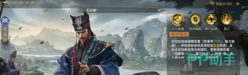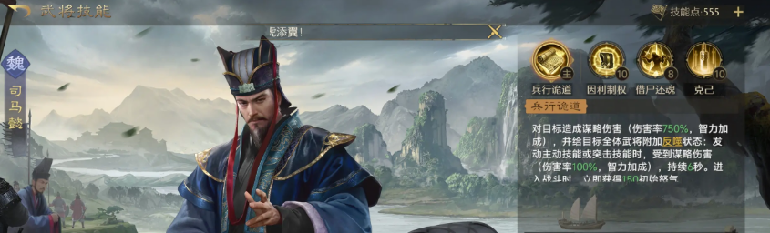 本阵容采用固定三人核心:主将司马懿、副将周瑜、辅助华佗。司马懿置于首位,技能配置首选【借尸还魂】+【蚀骨】,二者联动可高频触发中毒状态。游戏中中毒为独立异常机制,每回合造成基于目标最大生命值百分比的持续伤害,叠加层数后总伤可观,且不受常规免伤影响。若暂未获取【蚀骨】,可临时选用【鼓角齐鸣】作为过渡方案,虽中毒触发频率略低,但策略伤害基础与施法稳定性仍可保障输出下限。