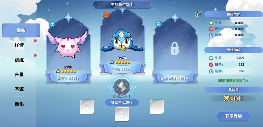 宠物系统是另一大经验加速器。主线流程即引导捕捉机制,推荐优先捕获攻击型宠物——其提供的战力加成数值最高,直接提升副本通关速度。辅助型与防御型宠物则用于特定场景补强,如长线挂机或高难度精英战。宠物专属培养资源仅可通过“宠物秘境”副本获取,该资源不可跨系统使用,务必专宠专用。星阵系统提供属性深度定制能力:主星阵固定强化角色基础属性(力量、敏捷、智力、生命、暴击等),辅星阵激活特殊效果(如技能冷却缩减、受击反弹、移动速度提升等)。建议根据职业定位配置辅星阵词条,例如战士优先激活“格挡率提升”“嘲讽成功率增强”,确保副本中站桩输出更稳定,减少死亡重试损耗。
