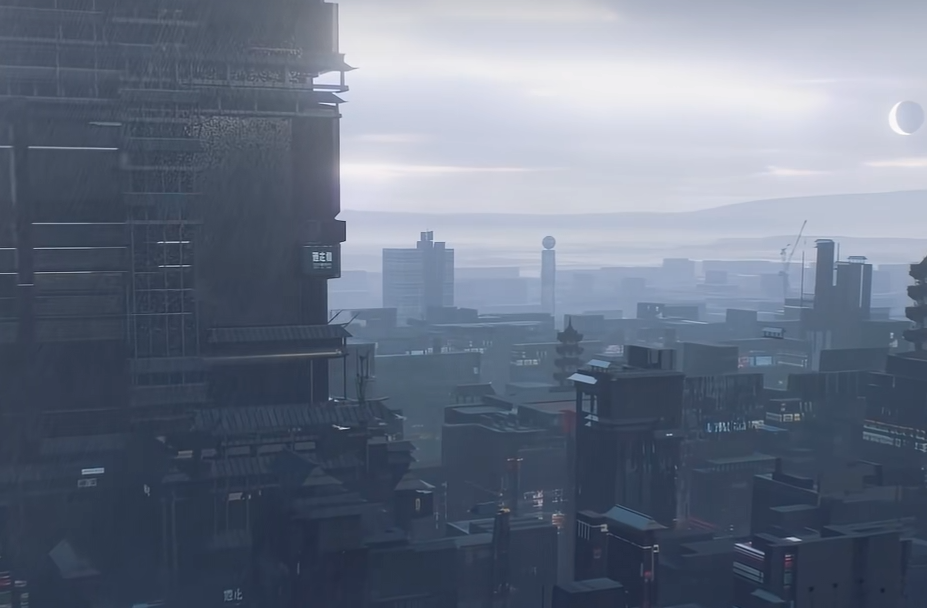 PV开篇以月相变化为视觉锚点:满月渐染赤红,继而色泽转暗、崩裂碎散。这一意象并非单纯美术设计,而是贯穿世界观的核心隐喻。画面在虚实交界处游移,暗示游戏将构建一个现实基底与超自然现象并存的近未来都市语境。