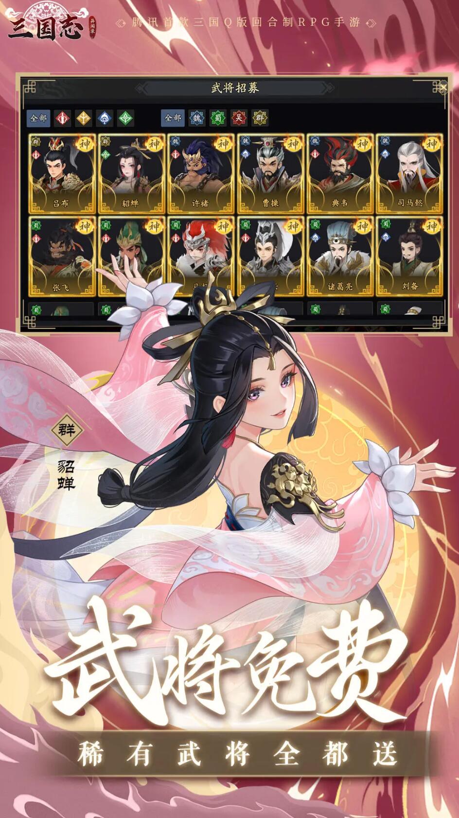 角色分为魏、蜀、吴、群雄四大阵营,涵盖历史武将与原创神魔如九尾妖狐、雷公。每个角色拥有专属技能树与觉醒形态,张飞可觉醒为魔燕人,技能附带范围眩晕。养成线包括升级、升星、装备强化,资源可通过日常任务与活动获取,付费点集中在皮肤与抽卡加速。而且游戏的背景基本上属于架空历史,三国加入“天书现世”“妖魔乱世”等奇幻设定,玩家选择影响势力走向。
