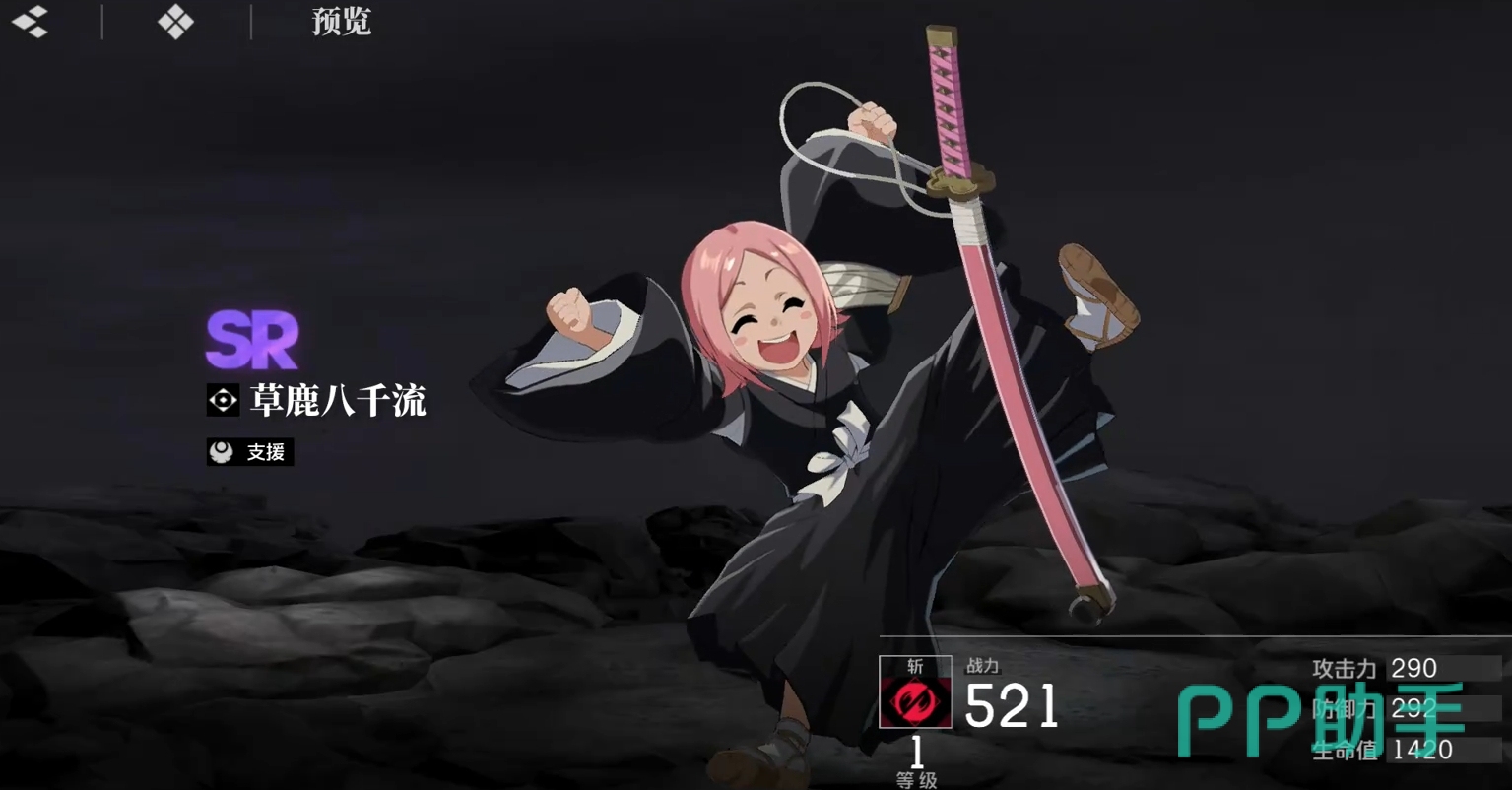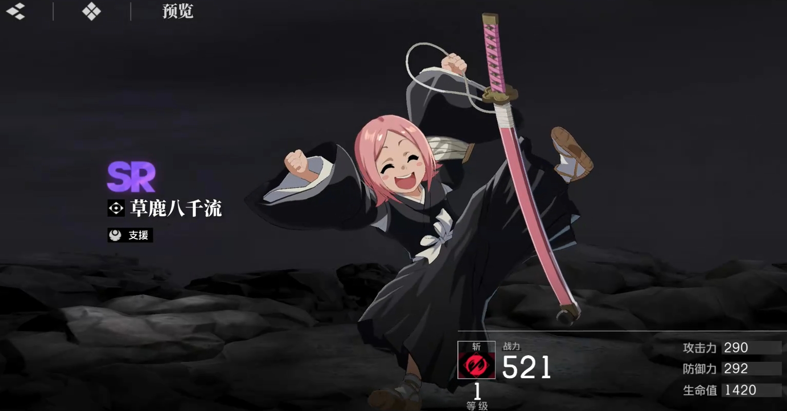 专为斩击类角色设计的辅助型sr单位,草鹿八千流在释放战技或成功封灭后可进入观战状态。在此期间,场上角色获得攻击力加成,同时为八千流自身积攒能量。每当能量达到50%和100%时,均可触发一次斩击伤害提升效果;若此时释放必杀技,还能进一步强化斩系角色的整体输出表现,形成良性循环。