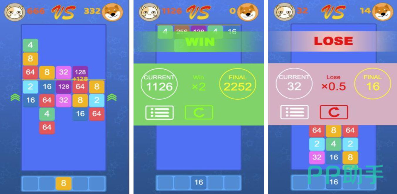 在经典2048玩法基础上,提升了游戏难度,使其更具挑战性。游戏需玩家匹配对手,展开在线对战,通过合成更大的数字,来获取更高的分数。在限定时间内,分数高的一方,可将所有方块整体推向对方阵地,直至触及底部。这场较量充满挑战,要求玩家具备敏锐的观察力与策略思维。