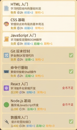 技能成长是贯穿全程的核心机制。单纯依赖接单无法实现长期跃升,必须同步投入学习时间。每日可在空闲时段选择专项进修,如提升编程效率、增强设计表现力或优化沟通能力。技能点需谨慎分配,确保与目标订单需求精准对齐,避免出现“有单接不了”的被动局面。