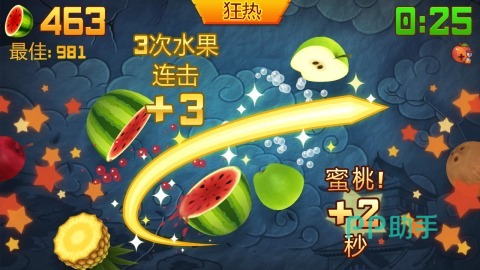 在这款游戏里面大家将会变成切水果的忍者。玩家的主要操作就是快速的去点击这些水果,就能够看到他们在空中被切成两半,而且游戏里面的玩法模式非常的丰富,比如说街机模式。大家在切水果的时候,尽量的不要碰到炸弹,因为会影响大家的切水果的速度和时间。而且每天登录到游戏里面还可以获得奖励呢。