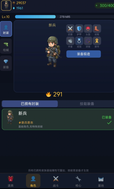 角色外观系统支持多维自定义:烈焰战士、寒冰守卫、暗影刺客等主题皮肤不仅视觉风格迥异,更绑定专属战斗效果,如毒液喷射、彩虹光束发射等差异化机制;装备体系覆盖头盔、肩甲、护腕等8大部位,支持自由装配与宝石镶嵌,实现战力成长路径的高度个性化。