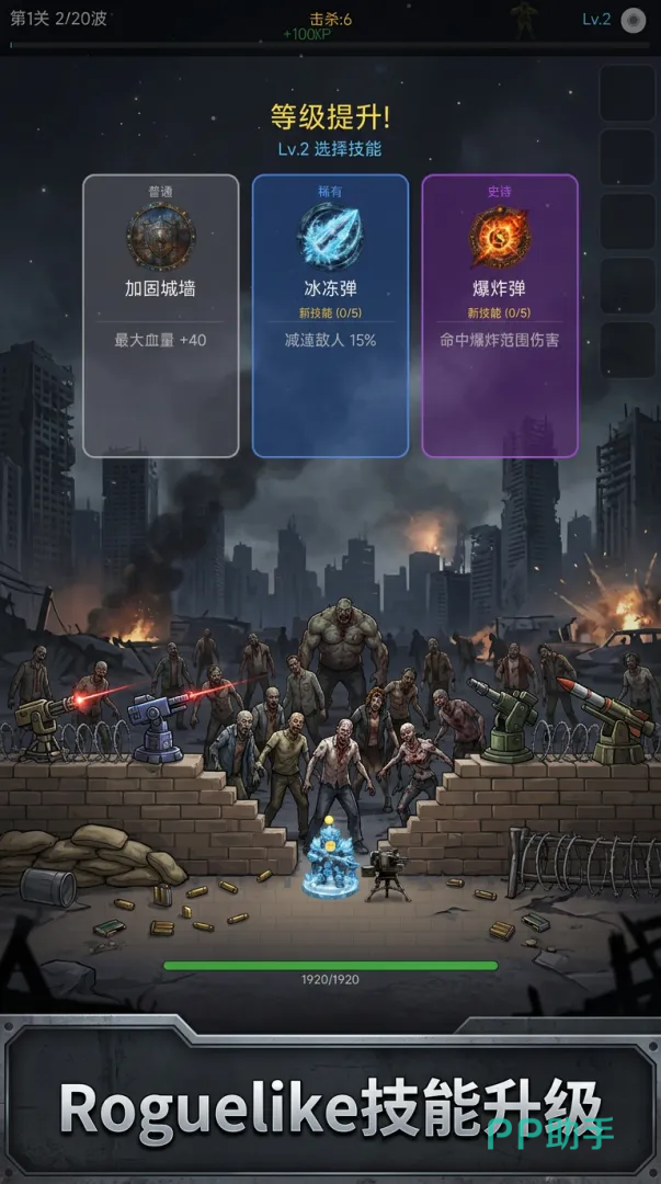 通关奖励机制驱动长期成长:每次成功守卫后均会掉落限定战利品,可用于强化角色属性、升级防御工事;城墙等级可由初始“破旧壁垒”逐步升格为“铜墙铁壁”,切实提升容错空间与战术纵深,从容应对不断增强的尸潮压力及多样化关卡挑战。
