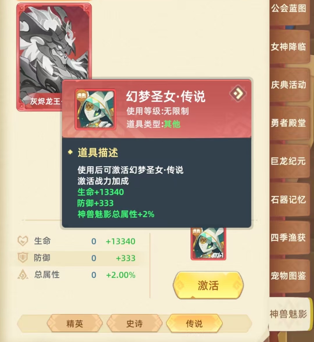 在理解了幻梦圣女的技能特性后,构建高效阵容便更加得心应手。推荐采用当前版本强势的全系增伤体系,以幻梦圣女为核心,搭配上古海龙与炎魂斗龙组成主力战组合。上古海龙拥有对三名敌人造成高额伤害的能力,并附加持续3秒的混乱与禁疗效果,其主战羁绊为创世龙神,进一步强化团队协同。炎魂斗龙则通过“梵境天火”技能打击多个目标,同时赋予角色反伤效果,反伤数值依据敌方攻击力计算,并施加流血状态,使目标每秒损失一定生命值,同样激活创世龙神羁绊。