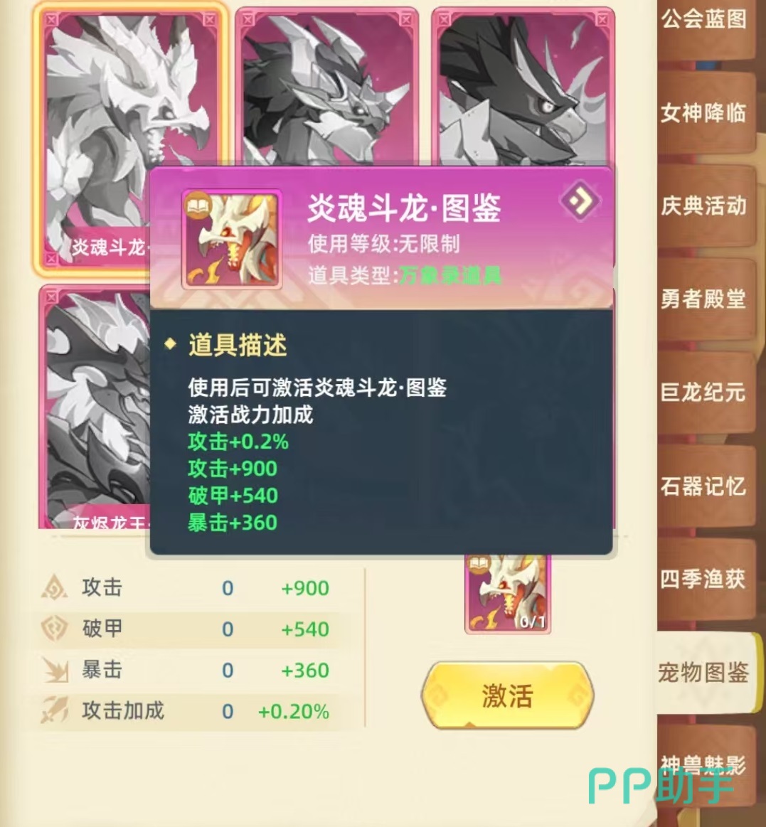 此阵容通过多重增伤叠加机制,实现整体输出翻倍的效果。所选宠物之间还能触发专属光环,显著提升全体出战单位的伤害表现,尤其在面对群体敌人时优势明显。值得注意的是,在确保光环条件满足的前提下,部分成员可进行替换,例如上古海龙可用月炎神龙替代,仍能维持阵容强度。