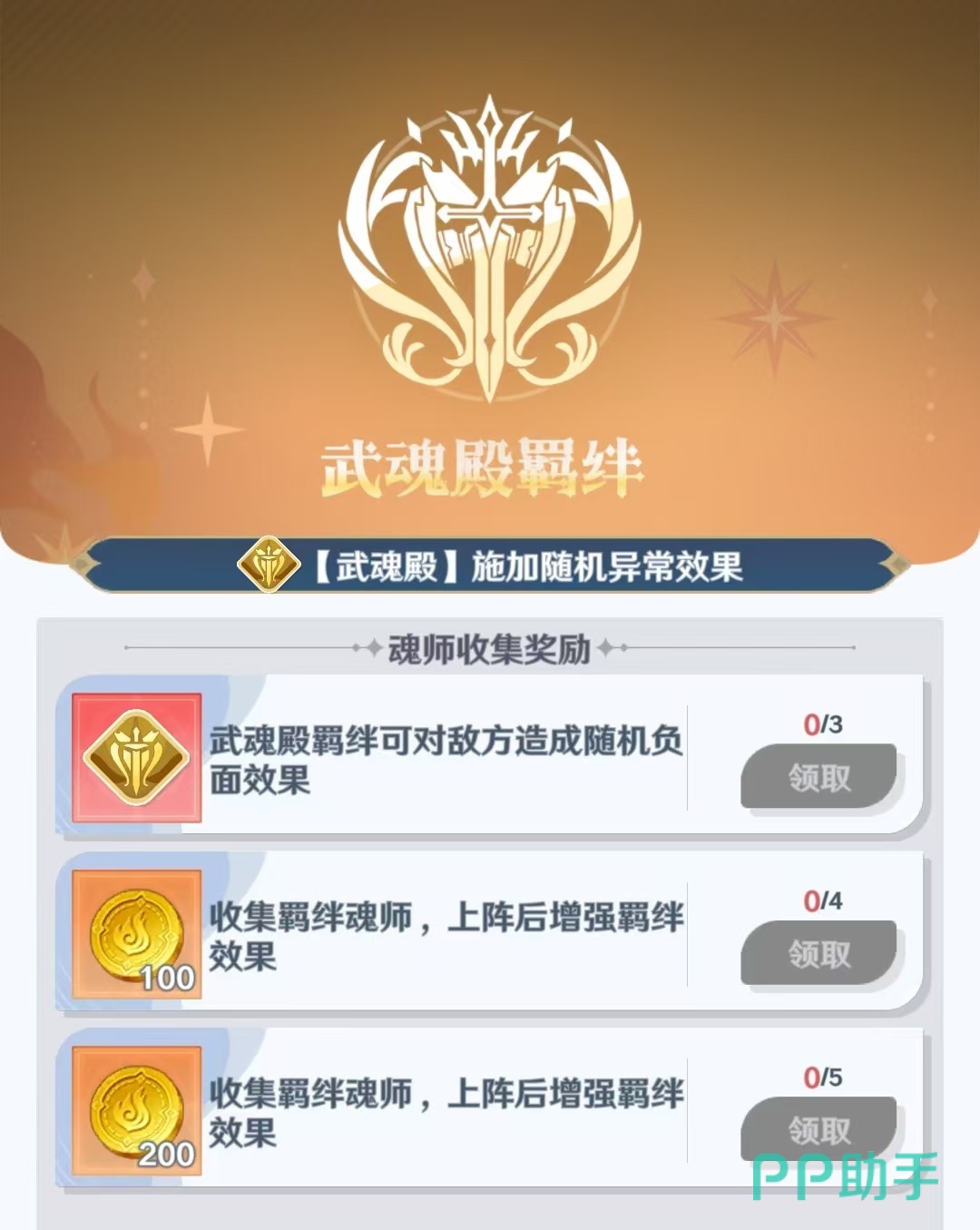 【武魂殿羁绊】:3名武魂殿魂师激活后,全队武魂殿单位伤害提升7.5%;5人满配时,伤害加成升至15%,且每7秒自动为目标施加一种随机异常状态(如眩晕、中毒、减速等)。该羁绊是异常流打法的核心支撑,适用于追求持续压制与状态叠加的玩家。