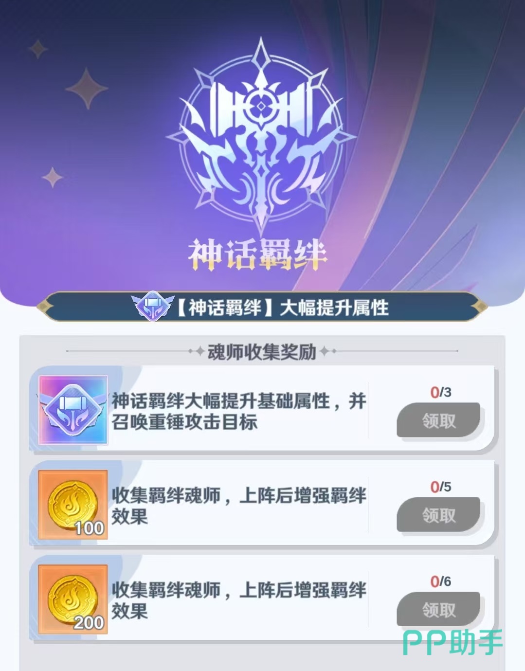 【神话羁绊】:仅限神话品质魂师生效。当队伍中神话角色达3名时,全体神话单位获得5%伤害提升与5%伤害减免;满编7名时,加成提升至15%,并额外获得每8秒一次范围伤害的被动技。该羁绊对养成资源要求最高,适合高投入玩家构建终极爆发体系。
