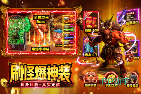 游戏采用轻量化养成设计,角色升级节奏明快,战斗反馈清晰流畅。装备获取方式高度自由:普通小怪即可随机爆出高品阶神装,无需依赖特定Boss或高强度副本挑战,大幅降低资源积累门槛。该设定显著区别于传统MMORPG中“仅限BOSS掉落顶级装备”的常见限制。
