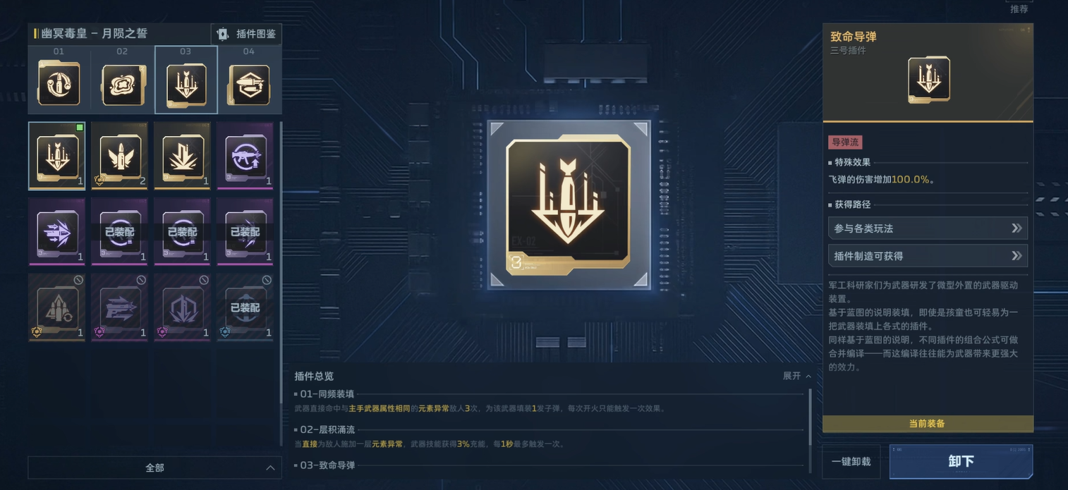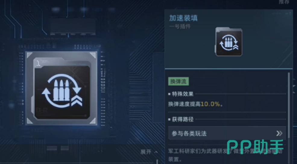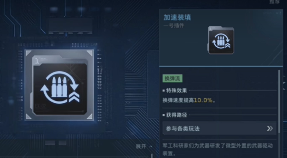当前主流配置方向共分四类,适配不同作战节奏与地图环境。首推“持久输出型”组合:以扩容插件扩大弹匣容量为核心,辅以充能插件压缩技能冷却时间,并搭配一个提供约0.5%基础伤害提升的增益插件。该方案显著降低换弹频率与技能真空期,适合新手建立稳定输出节奏。