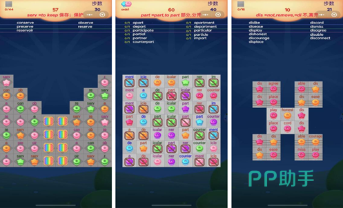 游戏将英语单词以甜品的形象呈现,各种造型漂亮的蛋糕甜甜圈看得人垂涎,你需要核对单词将一样的消除,玩法并不复杂,鲜亮的配色和可爱的甜品造型吸引了很多玩家。在体验消除闯关乐趣的同时还能记住各种单词,丰富英语词库,可谓是在玩中学习事半功倍,如果你对英语单词背记很苦恼,这款可千万不要错过。