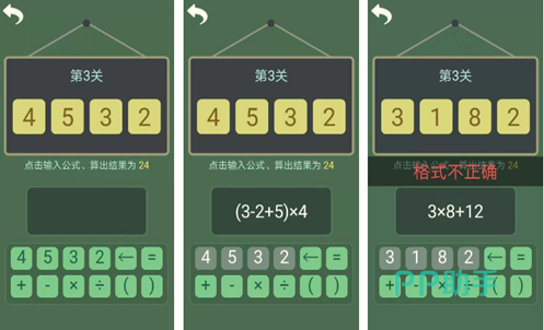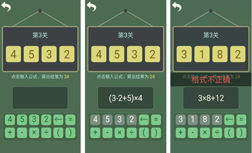 清新的绿色背景和简约的UI设计让人觉得很清爽,游戏以数学闯关为核心,每一关都会随机生成一个四位数字,你需要开动脑筋,将这些数字用公式联系最后算出得24。过程超级烧脑,但是没有时间限制,这对开发数学思维和逻辑很有帮助,还能提高速算的能力,每一次解开答案将获得满满成就感,让玩家对数学更感兴趣。
