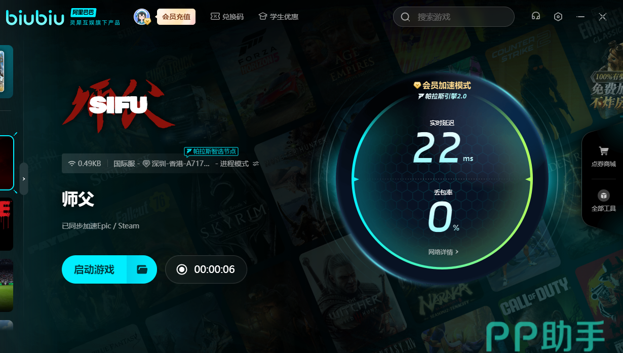 当我们在操控师傅中的角色时太卡,那就无法完成各种高难度的操作,例如格挡。这时可以用上biubiu,加速过后才能够用上各种高超的武术技巧。要是新用户的话,可领取3小时的免费加速,就能初步体验师傅中的格斗玩法。另外新老用户输入【biubiu不卡顿】,又能额外获得三天免费加速。由于师父作为一款国际大作,现在仍旧没有上线国服。所以为了成为一个得意的功夫高手,就得用上加速器,才能踏上你的复仇之旅。