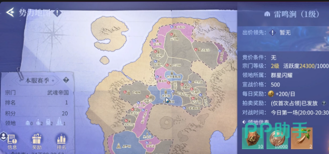 游戏中设有多个可争夺的领地区域,不同区域的参与条件与收益各不相同。例如雷鸣涧属于一级区域,准入门槛较低,适合初期宗门练兵,但每日仅提供200金币收益。而像索托城这样的高阶领地,虽然竞争激烈,但每日可产出600金币,并附带首次占领奖励,包括稀有药材、魂骨等珍贵资源。玩家应结合宗门现状,合理评估目标区域,与队友共同制定进攻策略,选择最优夺地点。
