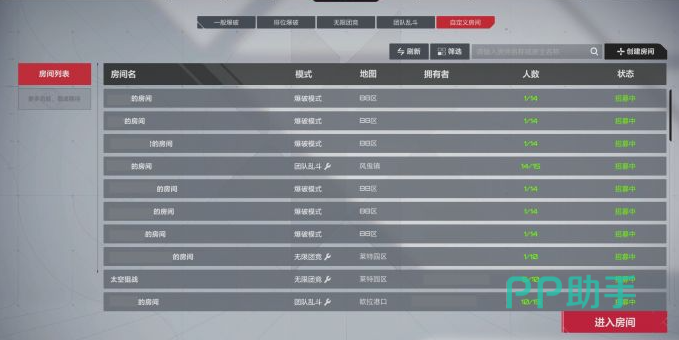 每周通过娱乐大厅可获取的奖励存在上限,系统会在每周一早上6点进行刷新。具体奖励包括:最高1250点经验、250点好感度、400挑战赛分数以及500理想币。尽管有数量限制,但只需完成数局游戏即可轻松拿满,整体收益表现相当可观。在查找房间时,可直接浏览房间列表,并利用筛选功能精准定位目标。支持按“仅显示有空位”或“仅限好友开放”的条件进行过滤,避免误入不合适的房间。当前提供的主要模式涵盖爆破模式与团队乱斗模式,满足不同玩家的竞技偏好。