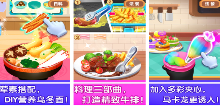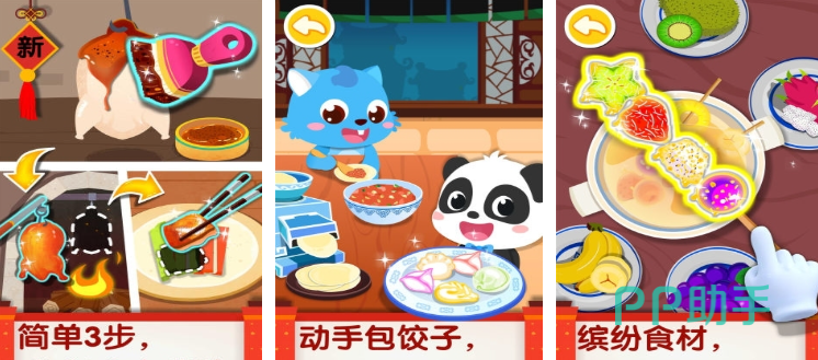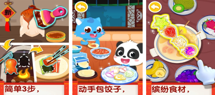 宝宝巴士中华美食游戏包含糖果、果汁、小吃、烧烤、关东煮等5大热门美食,以及50多种食材和道具,游戏采用色彩鲜艳、画面精美的设计风格,符合儿童的审美特点,并设有宝宝巴士系列中的经典角色陪伴孩子们一起烹饪美食。
