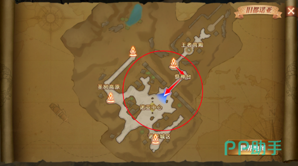 游戏当中的出发点可能需要玩家花费一部分时间,游戏当中设定的出发点是在旧都诺亚中央的大范围之内,其实出发点的范围还是非常小的,玩家控制小左拉这个人物,从祭神台走向诺亚中心即可触发成功。