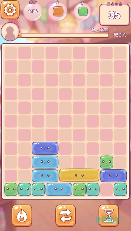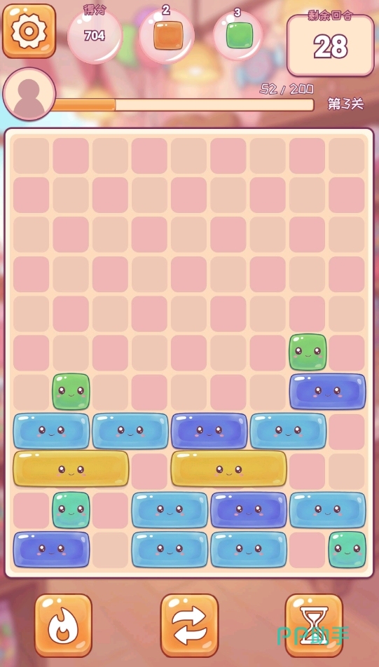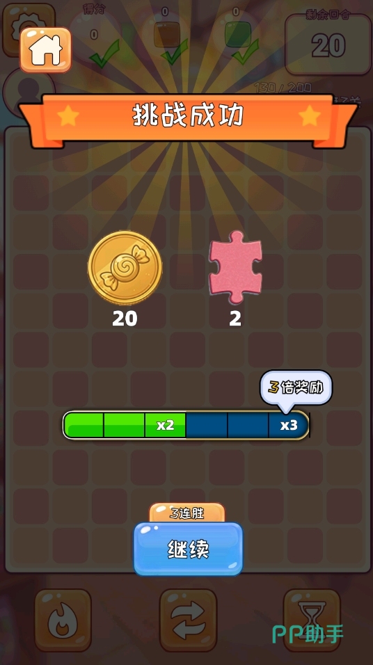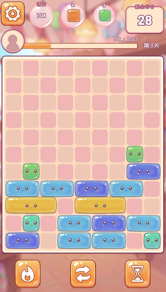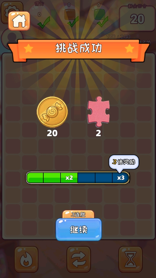 游戏提供两大核心模式:关卡模式与无尽模式。在关卡模式中,玩家需达成指定消除目标(如清除特定数量某类糖果、收集指定道具等)方可通关;无尽模式则考验持久力与节奏把控能力——只要上方区域未被堆满,挑战将持续进行,直至累计完成200回合为止。两种模式均支持通过空间预判与落点规划提升消除效率,大幅降低纯依赖运气的比重。