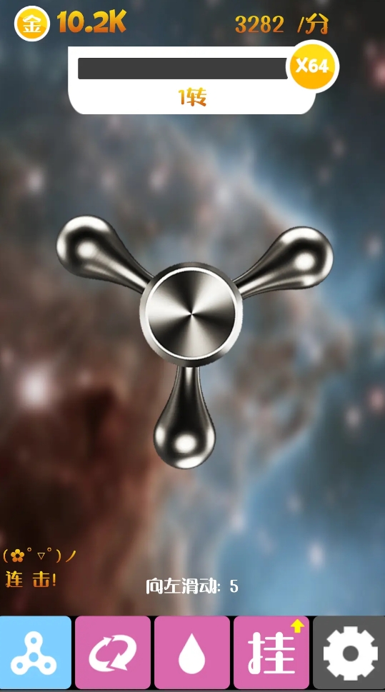 游戏是以指尖陀螺为核心的收集养成作品,它里面的指尖陀螺有着各式各样的形状,并且大部分都能免费拿到手或通过兑换来进行收集。这些陀螺在转动时都会发出十分酷炫的特效,玩家还能通过给陀螺升级,来令它拥有更高的转速并获得更为华丽的转动效果,而且每次成功完成陀螺的转动都能得到材料和资金的奖励,所以也不难养成。