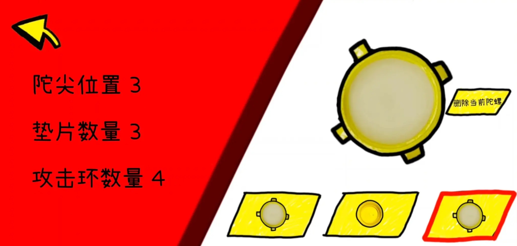 作为一部以陀螺对战为主的游戏,《瓶盖陀螺》有着很直观的玩法,各位可在设计好自己的陀螺后,将它放上场去进行战斗。游戏里的陀螺设计玩法非常的自由,各位可按自己所需去进行陀螺配重的更改,亦或去决定陀螺上转配的攻击环等配件的数量,不同的设计会令陀螺有着很不一样的特性,灵活地选用合适的方案才是获胜的关键。