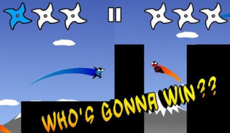 以跑酷加闯关的玩法相结合,还支持双人共同体验玩家在。开局之后通过点击屏幕的方式,就能控制其中的忍者完成跳跃以及做出很多惊人的动作,比如飞檐走壁等等。两位玩家可通过不断攀升的方式,相互较量。找到正确的时机之后,就要飞射出飞镖将对方打败。