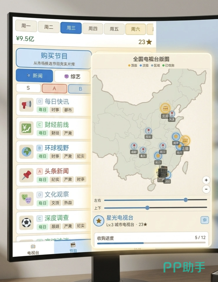 游戏深度融合传媒产业逻辑,涵盖新闻采编、综艺研发、剧集投拍等全链路内容生产环节,并同步嵌入财务预算管理、人力资源调配、设备采购维护等后台运营模块。玩家不仅决定播什么,更要思考为何播、何时播、如何播得更精准。