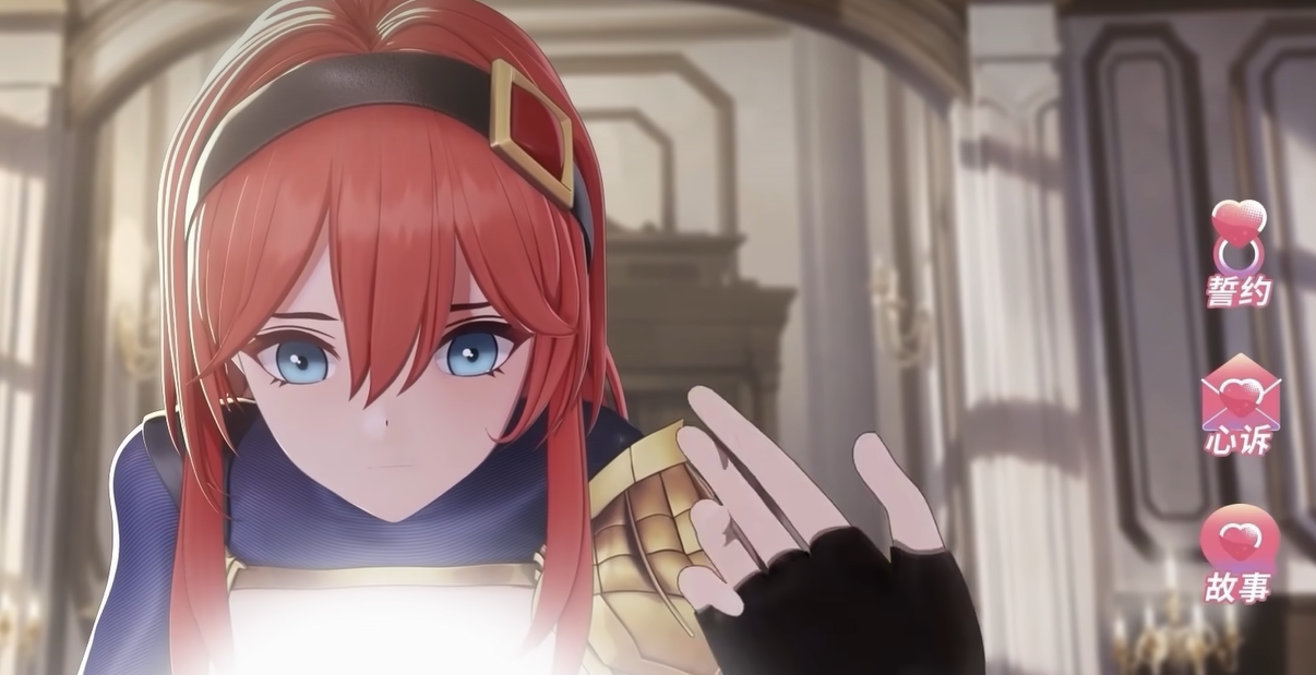 【誓约之契】为关系进阶阶段。需亲密度达1200点方可开启,流程包含三段式告白对话。若所有选项符合角色情感偏好(由前期互动数据动态判定),角色将呈现羞涩微表情,并触发专属契约动画。成功缔结后,解锁“亲密接触”权限(含拥抱、额吻、指尖相扣),单次动作最高可增加180点亲密度。