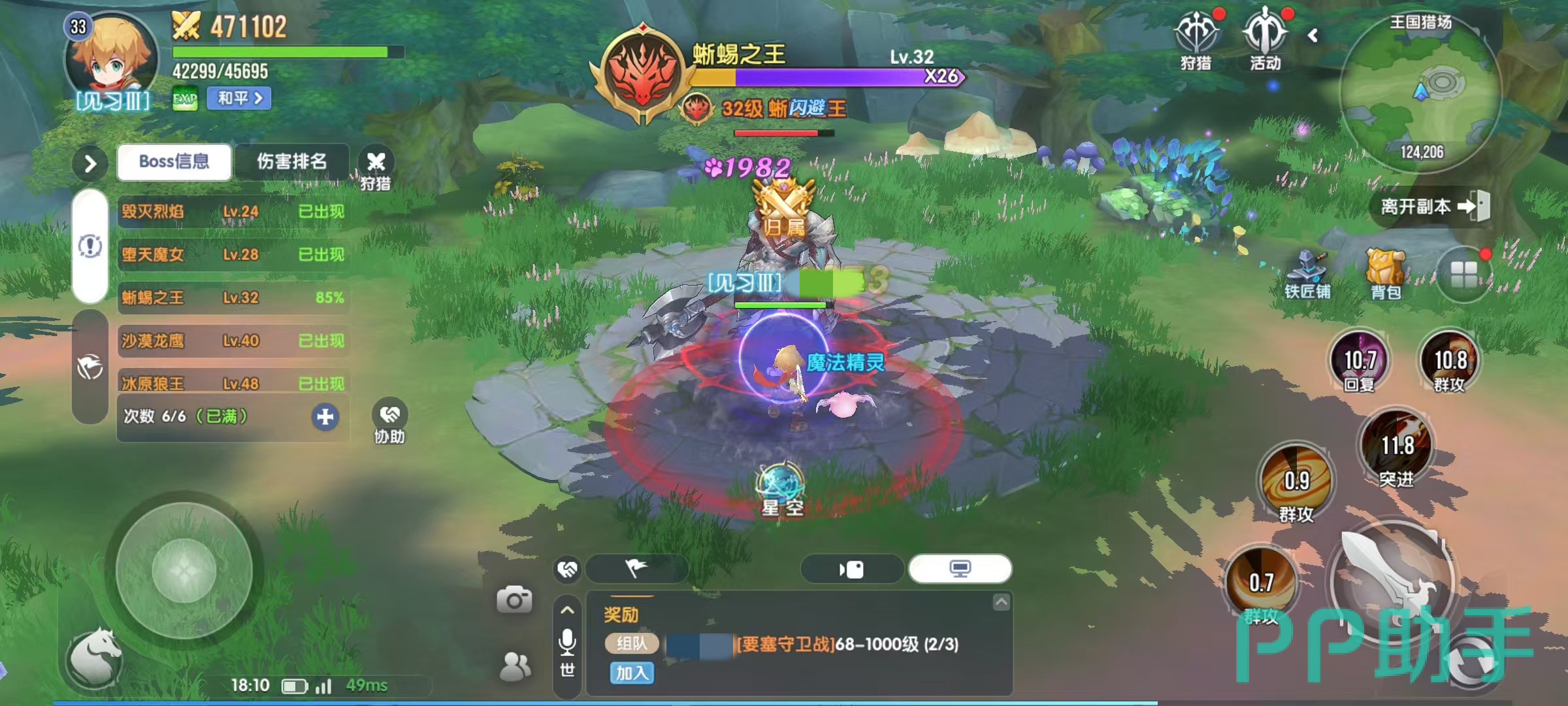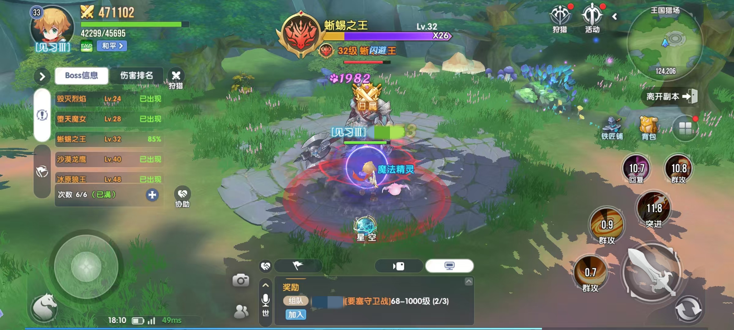 主界面点击【活动】→【日常活动】即可直达王国猎场入口。列表中按难度梯度展示多个可选BOSS,每只均标注明确推荐战力阈值,建议严格参照提示选择对应层级,避免因战力不足导致效率骤降。进入后全程自动演算战斗流程,无需手动释放技能。若追求更高榜单名次与资源回报率,推荐优先组队参与——合理配置战士、法师、射手等职业组合,能显著提升团队整体DPS输出曲线;同时提前激活攻击增益类药剂、携带高暴击率宠物,亦可进一步放大伤害基数。长期来看,该玩法不仅是快速积累养成资源的核心渠道,更是横向检验角色实战强度的重要标尺。