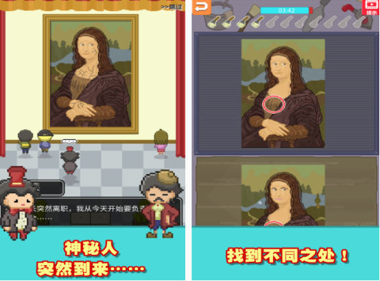 这款采用像素风格为大家所设置的游戏,也会让你置身于美术馆里面,无论是里面,可看到哪些知名的作品,都可通过找不同的玩法,来享受所具备的趣味性。你的主要任务就是,将美术馆里面的作品进行修复,当大家看到了以后,可通过手指操控的方式,将美术作品放大或者是缩小,完成了修复以后,就可收获金币这样的奖励。
