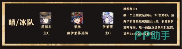 当伊莱莎成为队伍主轴时,整个组合可最大化激活冰元素的协同效应,形成当前版本中最强势的纯冰队形态。反之,若更倾向于使用范海辛承担主要输出职责,那么第三位成员可根据战况灵活替换为暗属性或其他元素单位。值得注意的是,伊莱莎虽归属冰队主力,但她本身具备暗系特殊机制,因此后期若搭配菲奥,两者之间能产生显著的相互增益效果。