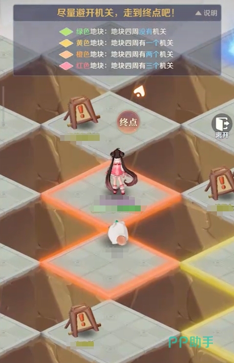 在玩法初期或参与人数较少阶段,地图上的标识牌覆盖有限,部分区域缺乏明确指引。此时玩家需结合颜色逻辑主动验证:例如站在黄色格子上,若向某一邻格移动后触发落雷,则剩余三个邻格中必有且仅有1个陷阱,其余两个方向即为安全通路。通过此类动态排除法,配合颜色规则反复校验,可逐步构建出通往终点的可行路径。成功抵达终点后,系统将自动发放对应奖励。