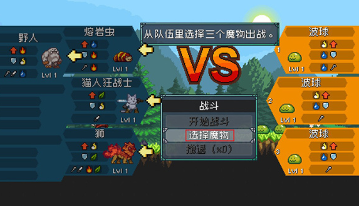 怪物乐土里面呈现的是非常经典的像素世界,玩家需要在这个世界中操控角色,不断沿着道路向前,在这个过程中会遇到大量的魔物,可以驯化这些魔物成为自己的宠物,不每一只魔物都有不同的设定和战斗能力,玩家可以借助他们的这种设定去对抗其他的怪物,每一次对战采取的都是3v3的设定,这就表示,玩家可以选择三个不同特性的怪物组成一支队伍,然后让他们分别利用自身的能力加入到战斗中。
